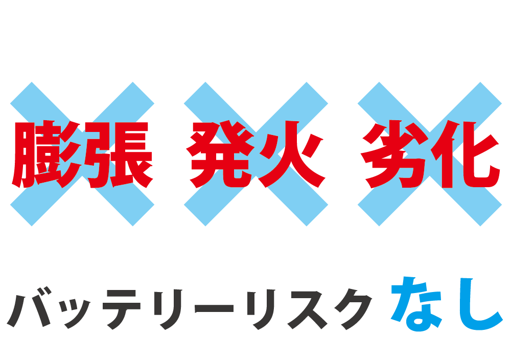 本端末はバッテリーを内蔵しない構造により、膨張や発火といったバッテリーリスクを抑え、より安全・安心にご使用いただけます。