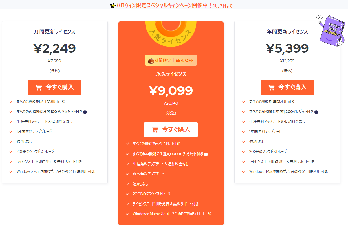 また、購入後は永久ライセンスとして使えるため、一度購入すれば継続的な更新費用は不要です。