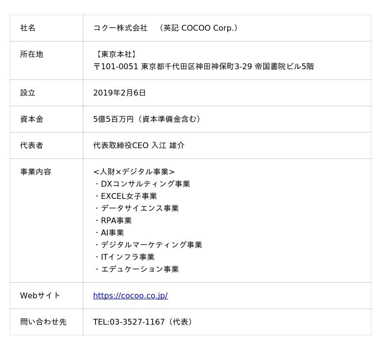 コクー株式会社は、労働人口減による人手不足を「人財」×「デジタル」で解決し、企業の成長・発展ならびにより良い社会に貢献することを目的に様々なサービスを創造し提供。