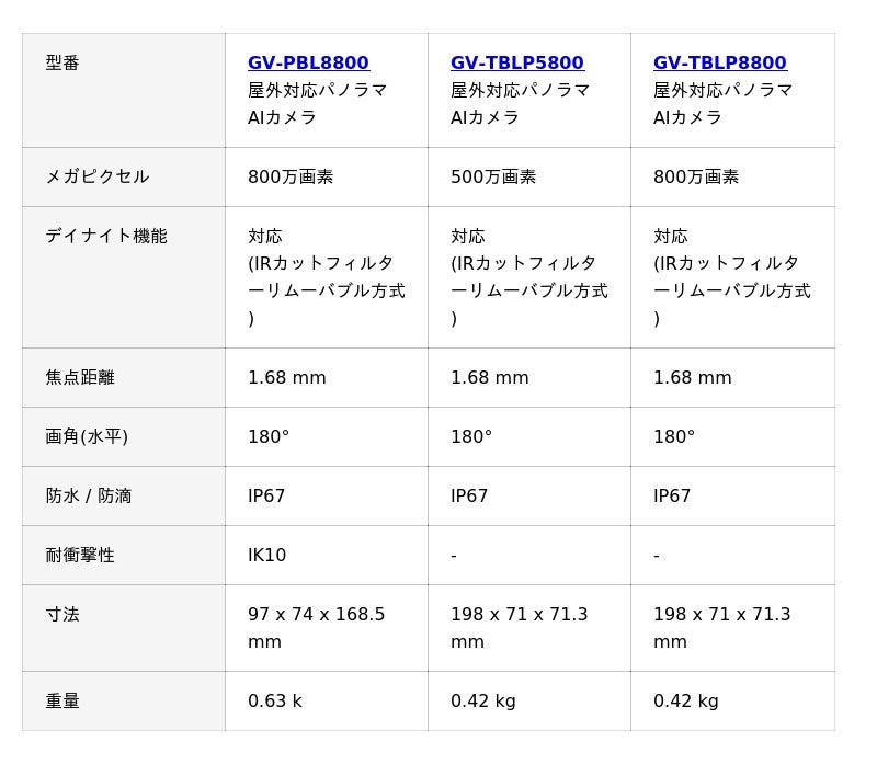 GV-TBLP8800屋外対応パノラマAIカメラ