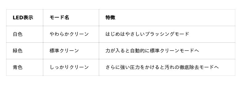 モード:やわらかクリーン・標準クリーン・しっかりクリーン
