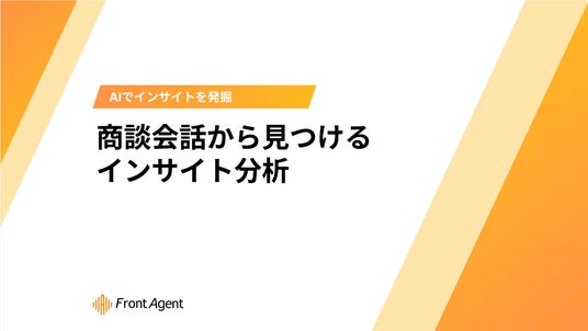 会話を録音するだけで、顧客の見えない本音を可視化し、組織を変革するインサイトアナリシス(TM)です。見えない本音から勝ち筋を導き出す特許技術、Deep Insight Engine(TM)を搭載。なぜ、お客さまは貴社を選ぶのか。なぜ、お客さまは購入しなかったのか。お客さまに選ばれつづけるために、Front Agentがお客さまとの会話からインサイトへと導きます。対面、Web会議、電話、あらゆる会話に対応し、kintoneやsalesforceのAIエージェント化も実現。サイボウズパートナー評価制度にて3つ星を獲得。
