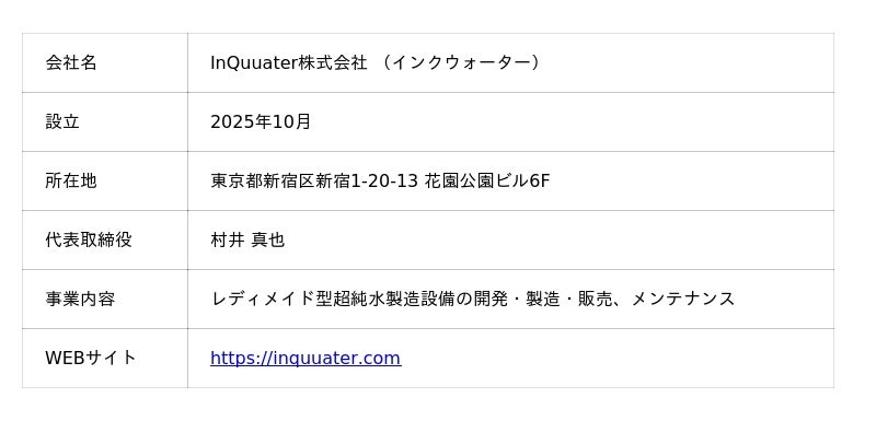 栗田工業株式会社(東京都中野区、社長:江尻 裕彦、以下「クリタ」)の子会社であるFracta Leap株式会社(東京都新宿区、代表取締役:北林 康弘、以下「Fracta Leap」)は、電子産業向け レディメイド型 超純水製造設備「e-WT」の開発および販売のために、この度InQuuater株式会社(インクウォーター、東京都新宿区、代表取締役:村井 真也、以下「InQuuater」)を設立し、同製品の受注を開始しました。