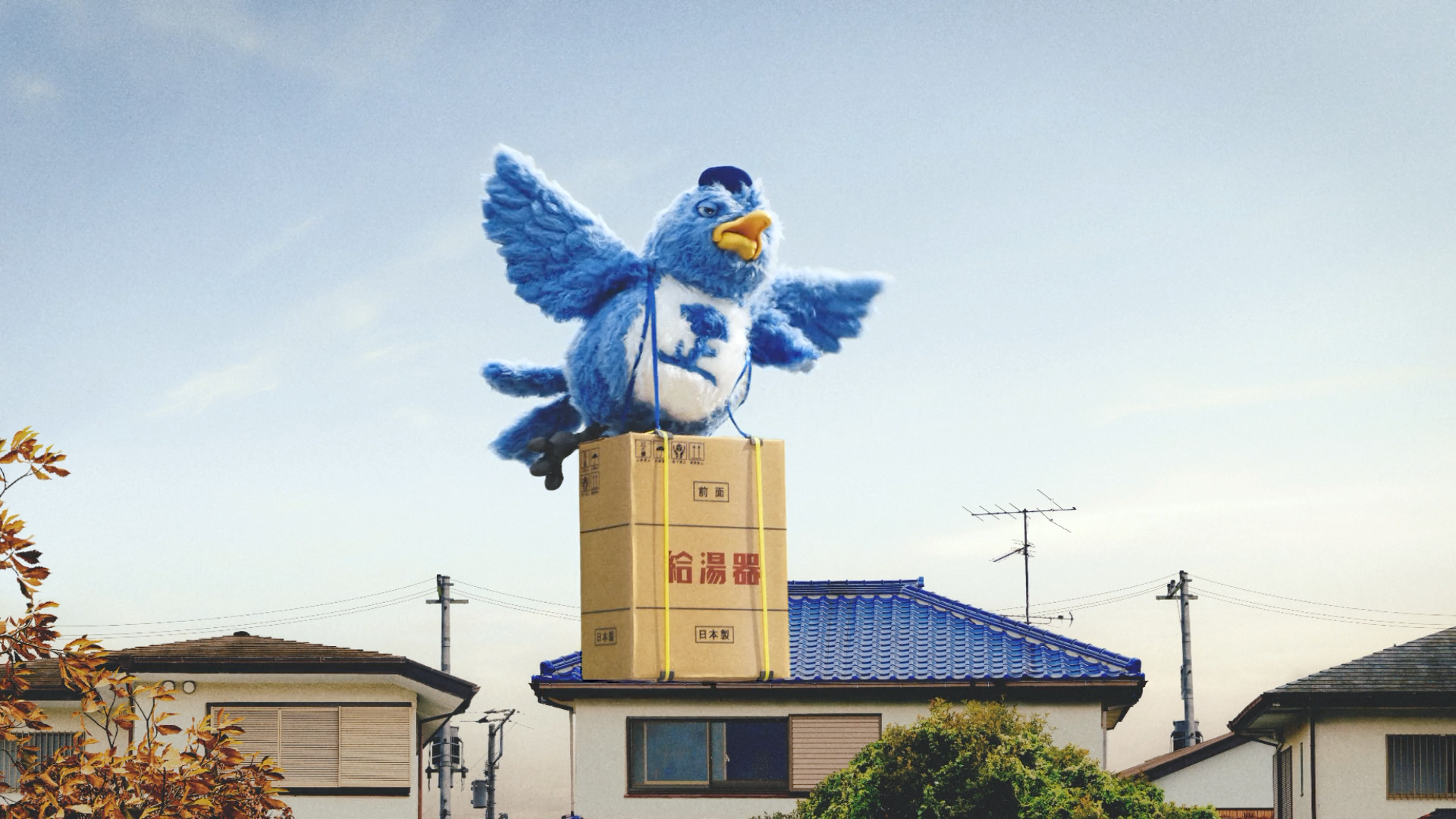 ふわふわの羽をまとった正直屋カラーの青い鳥 オネストリー正は、インパクト抜群のルックスながら味のある声と表情豊かでどこかキュート!