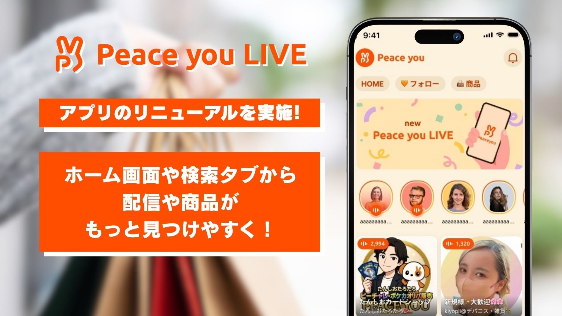 ライブコマースアプリ「Peace you LIVE」ユーザビリティの向上を目的としたリニューアルを実施