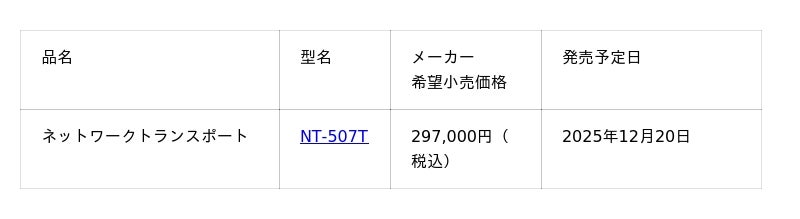TEAC(ティアック)は、Reference 500シリーズのネットワークトランスポート、NT-507Tを発売いたします。