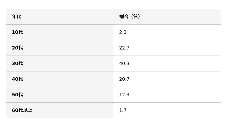 利用・経験者の年代構成 30代が中心、20~40代で全体の8割超