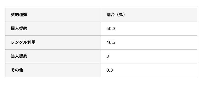 個人契約とレンタル利用がほぼ同じ割合 利用スタイルが多様化