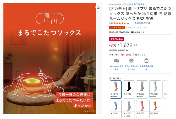 Amazonスマイル Sale特集|足元から全身ぽかぽか「まるでこたつソックス」
