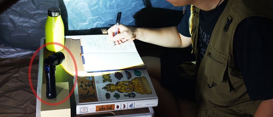 両手を使いたい作業中も、ハンズフリーで照らします。