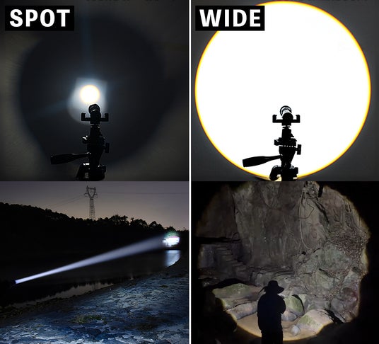 レンズ部をスライドするだけで、ワイド照射⇄スポット照射を瞬時に切り替え。