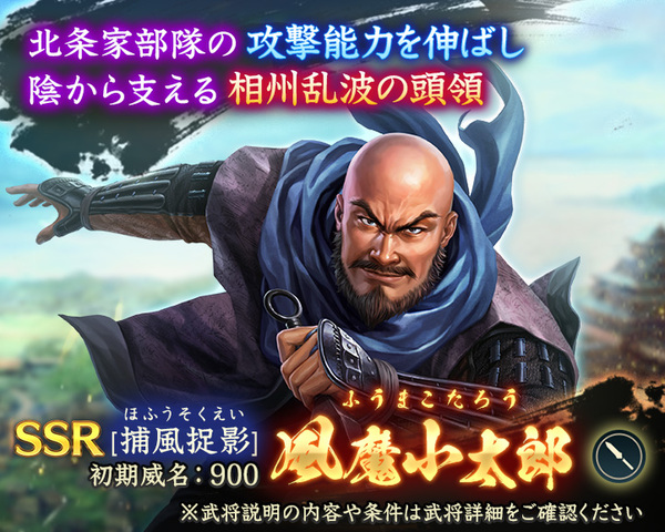 ■SSR【捕風捉影】風魔小太郎、SSR【戦場照らす光】北条氏照がピックアップ! 「特別登用・小田原城の戦い」開催