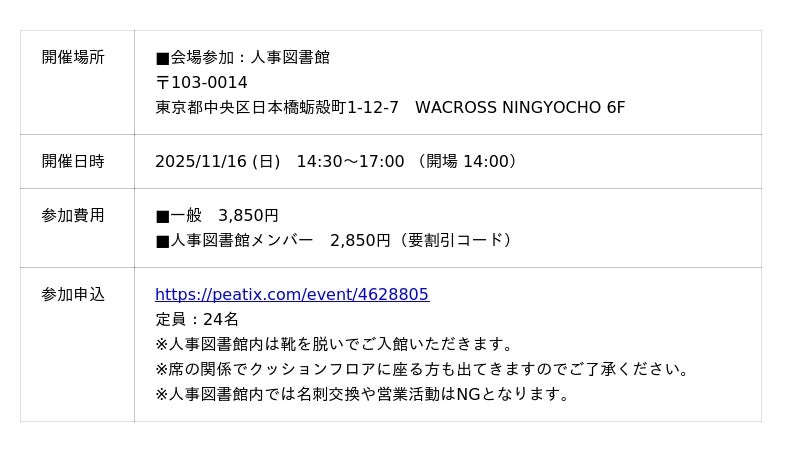 人事・管理職必見!AI時代の「育てる力」を磨くヒューマンスキル講座×1on3対話ワークを開催|11/16(日)@人事図書館
