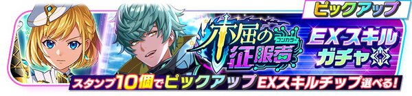 スタンプ2、7個目で「EXスキルチップジェム」10個、スタンプ5個目で★5確定、スタンプ10個目で「不屈の征服者EXスキルチップメダル」1個が獲得できるなど、ガチャスタンプカードでもらえる報酬が豪華になっているので要チェックだ。
