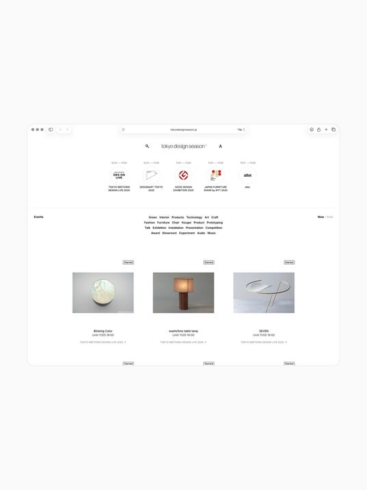 今回ローンチしたβバージョンでは、2025年秋に東京を中心に開催される様々なデザインイベントの展示情報を垣根なくリストアップしています。