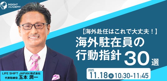 グローバル人材育成・研修業を手掛けるインサイトアカデミー株式会社(本社:東京都港区新橋、代表:金 珍燮)は、無料webセミナー「海外赴任はこれで大丈夫!海外駐在員の行動指針30選」を開催致します。