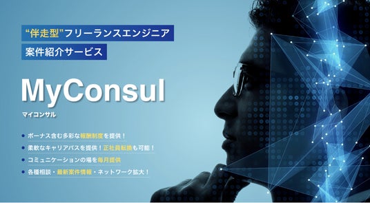 「MyConsul」は、ITフリーランス向けに、システム開発やコンサルティングを中心とした案件紹介から契約支援、キャリア相談までを一貫して提供するサービスです。当社営業が最適な案件を提案し、契約面の条件交渉や煩雑な事務手続きをサポートします。契約中のITフリーランスの希望をもとに、業務のフォローアップや長期的なキャリア形成を支援することで、安心して働ける環境を提供します。■リニューアルの背景