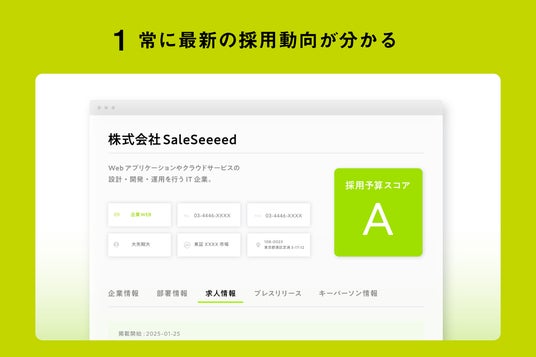 1:常に最新の情報がわかる、採用情報・プレスリリースデータ