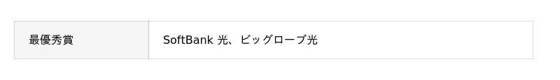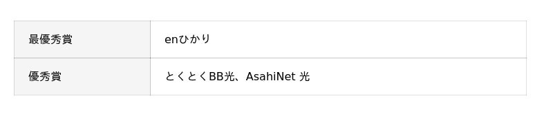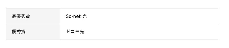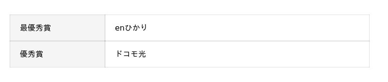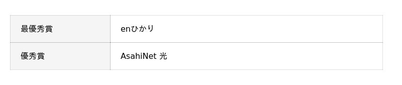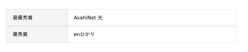 今回の特徴は、縁人の提供する光コラボ「enひかり」のエントリーが目立っている点です。同サービスは総合満足度で最優秀賞を獲得したほか、回線スピードの部、継続意向の部でも最優秀となっています。