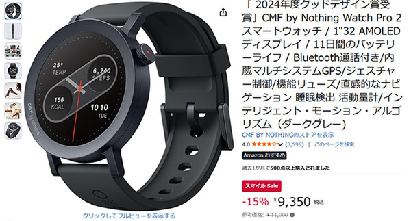 デザイン性と機能性を両立したスマートウォッチの決定版! 2024年度グッドデザイン賞を受賞した「CMF by Nothing Watch Pro 2」が、Amazonスマイルセールに登場しました。