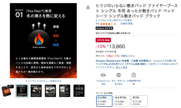 Amazonスマイルセール開催中!冷え性さん必見「ファイヤーブースト敷きパッド」が10%OFF