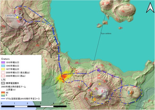 有珠山は約20~30年周期で噴火を繰り返す活火山で、2000年の噴火では、地盤の隆起や泥流によるインフラ被害が発生し、半径5km高度10km内の航空機の飛行を制限するNOTAM(航空情報)が発行されたことで、火口周辺の詳細な空中調査が困難となりました。