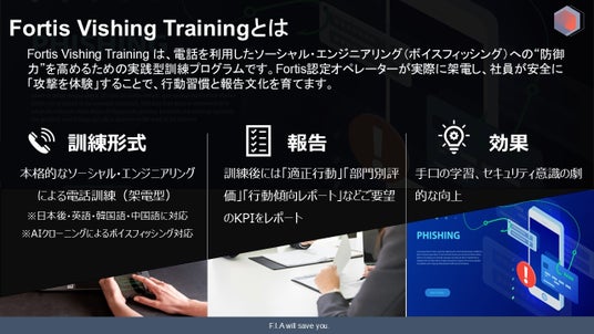 「Fortis Vishing Training」は、電話を用いたボイスフィッシングに対し、社員が“安全に体験”しながら対応力を高める実践型訓練プログラムです。