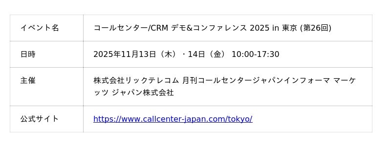 コールセンター/CRM デモ&コンファレンス 2025 in 東京について
