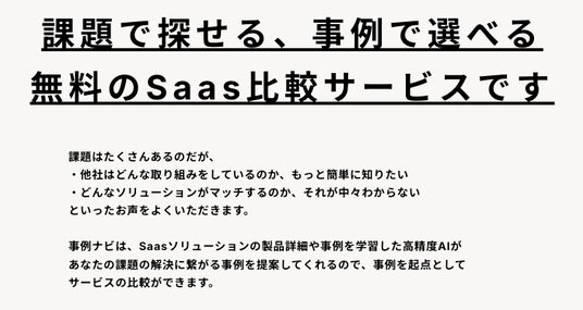 課題から探せる、事例で選べる! ーー無料のAI × Saas比較サイト「事例ナビ」β版公開ーー