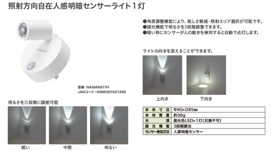 ■ コンセント式の人感明暗センサーライト。ライトの向きを自由自在に変更できます。
