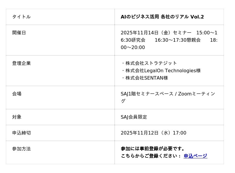 ストラテジット、SAJセミナー「AIのビジネス活用 各社のリアル Vol.2」に登壇