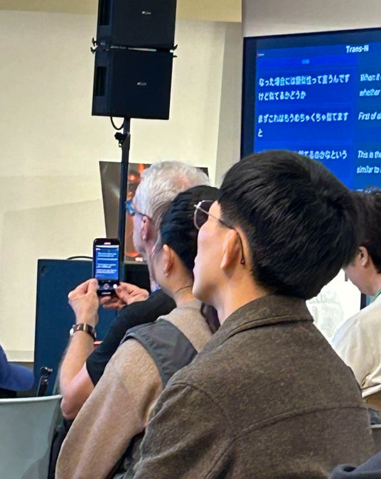 日本人講演中、海外の来場者はN-Translateの字幕だけ録画