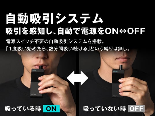 4. 自動吸引システムで吸引を感知し、自動で電源をON・OFF切替。『吸い始めるまでの待ち時間ゼロ・止めたい時に止められる』