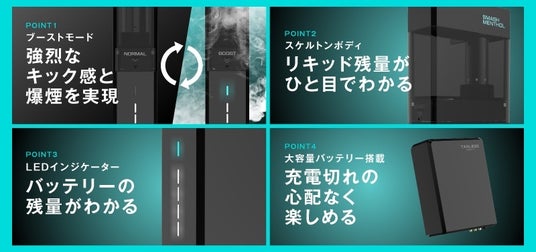 また、カートリッジの装着方向によって、切り替えられる「BOOSTモード」を搭載。通常の吸引(ノーマルモード)でも、旧モデルを上回る濃厚さですが、BOOSTモードでは一気に出力を高め、“重厚な煙の質感”と“深いコク”を演出します。まるで一口ごとにリキッドが新鮮に生まれ変わるような感覚を目指し、味・香り・煙量のすべてを再設計しました。