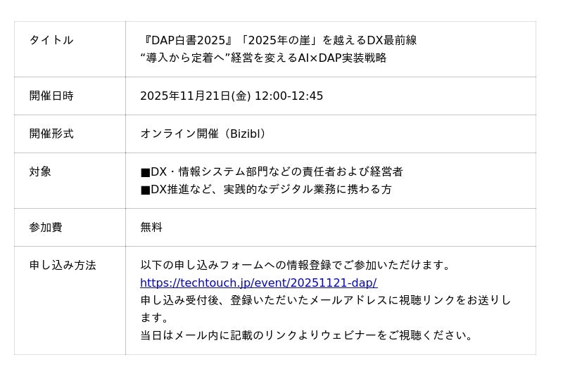 お申し込みはこちら:https://techtouch.jp/event/20251121-dap/