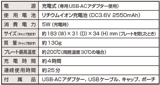 2段階の温度調節/最高温度約200℃ ※周囲温度30℃の場合
