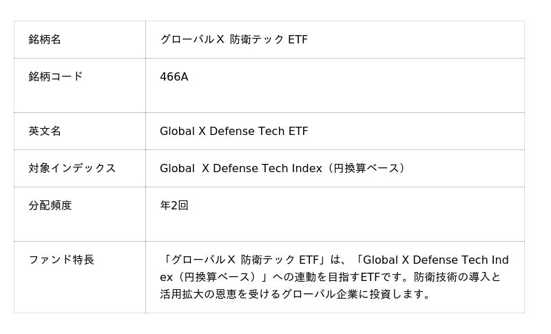 Global X Japan株式会社「グローバルX 防衛テック ETF」【466A】東京証券取引所より上場承認