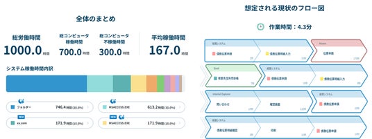 アプリケーションやファイルの利用状況や、操作ログから、従業員の業務実態を可視化。定型業務などにおいて、繰り返し作業されているパターンをAIが自動で抽出・分析し、改善が必要な業務の選定を支援しDXの推進に寄与します。