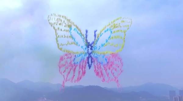 カラースモーク搭載ドローンで空にモチーフを描く、ドローンショー「ドローンインパルス」提供開始