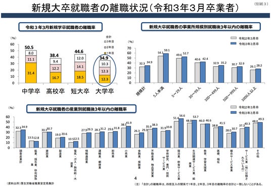 出典:厚生労働省「新規学卒就職者の離職状況(令和3年3月卒)」公表資料 https://www.mhlw.go.jp/content/11805001/001318959.pdf