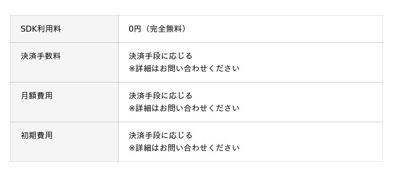 - - SDK利用料:完全無料