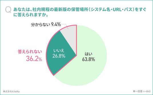 - 経営層、規程の保管場所を「すぐに答えられない(いいえ/分からない)」が36.2%