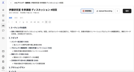 設計演習、講評会、ゼミ、ディスカッションなど、アイデアが交わされる場面で記録をAIが自動化。音声を自動で文字起こし・要約し、発言や指摘を整理して“再利用できる知識”として蓄積します。