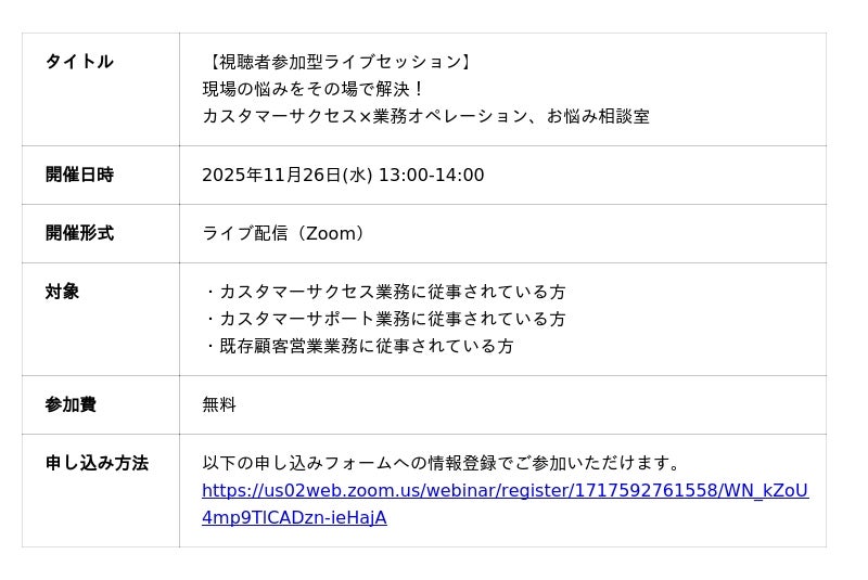 【11/26 13:00開催】視聴者参加型ライブセッション!現場の悩みをその場で解決。カスタマーサクセス×業務オペレーション、お悩み相談室
