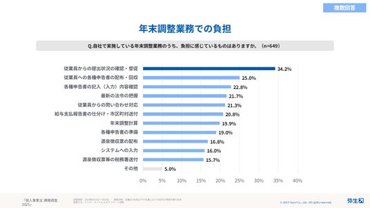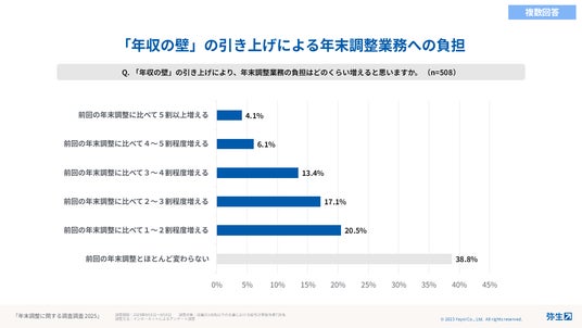 弥生株式会社(本社:東京都千代田区、代表取締役 社長執行役員 兼 CEO:武藤健一郎、以下「弥生」)は、全国の従業員100名以下の企業における給与計算担当者を対象に、令和7年度「年末調整」に関する意識や実務上の課題、法改正(「年収の壁」など)への対応状況、業務負担の実態を明らかにすることを目的に意識調査を実施しましたので、お知らせします。