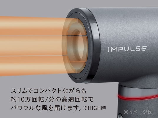 ・風速約40m/秒。ハイスピードブラシレスDCモーター搭載。最大約10万回転/分の高速回転でパワフルな風を届ける。※