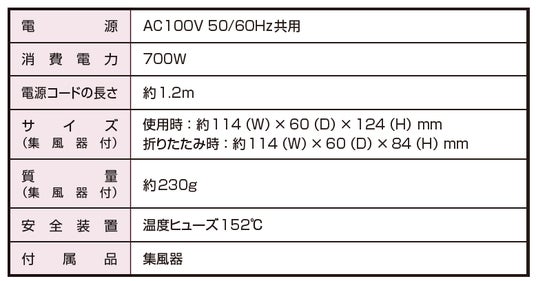 ・約114(W)×60(D)×124(H)mm(集風器付)の手のひらサイズ。